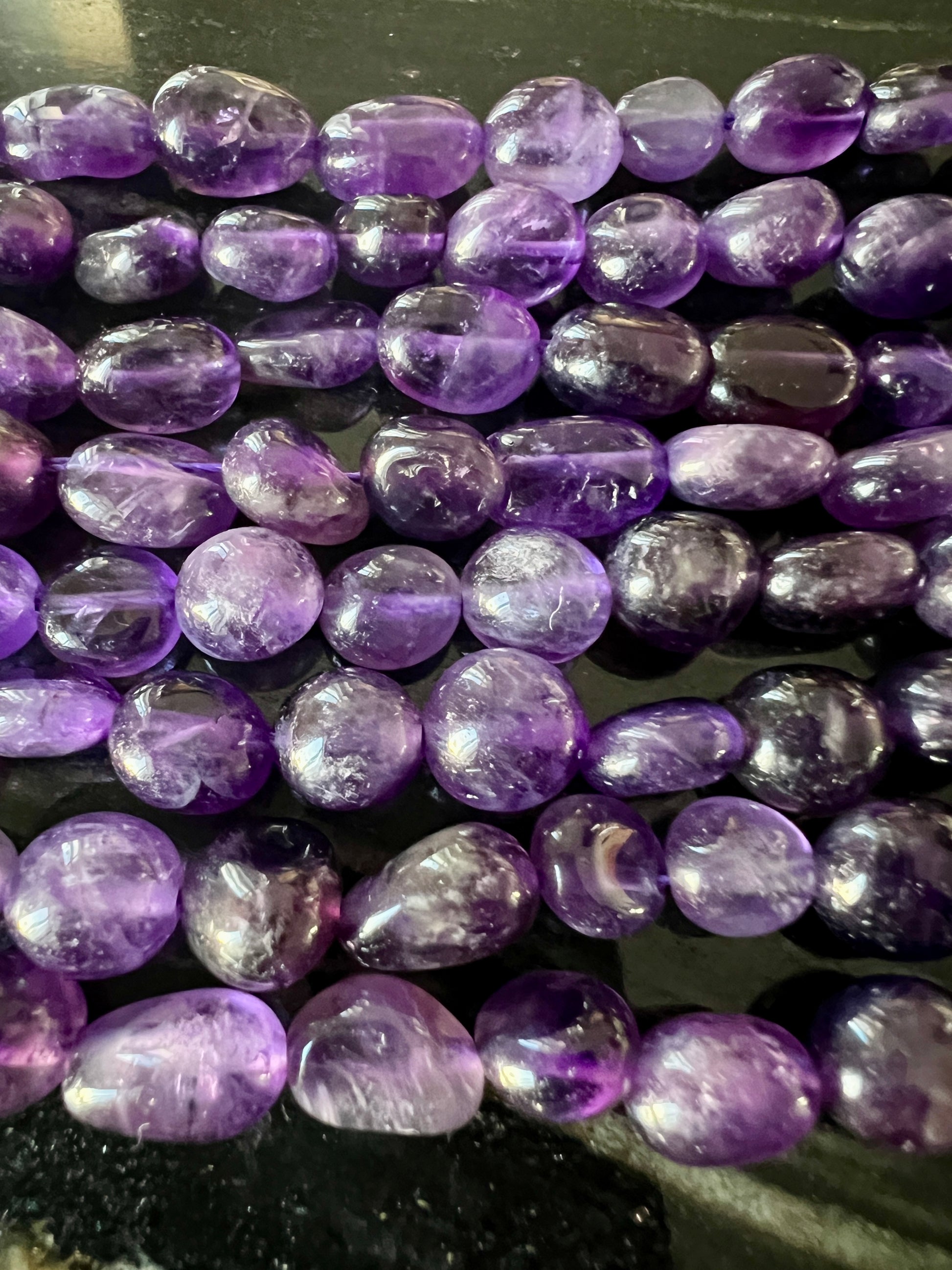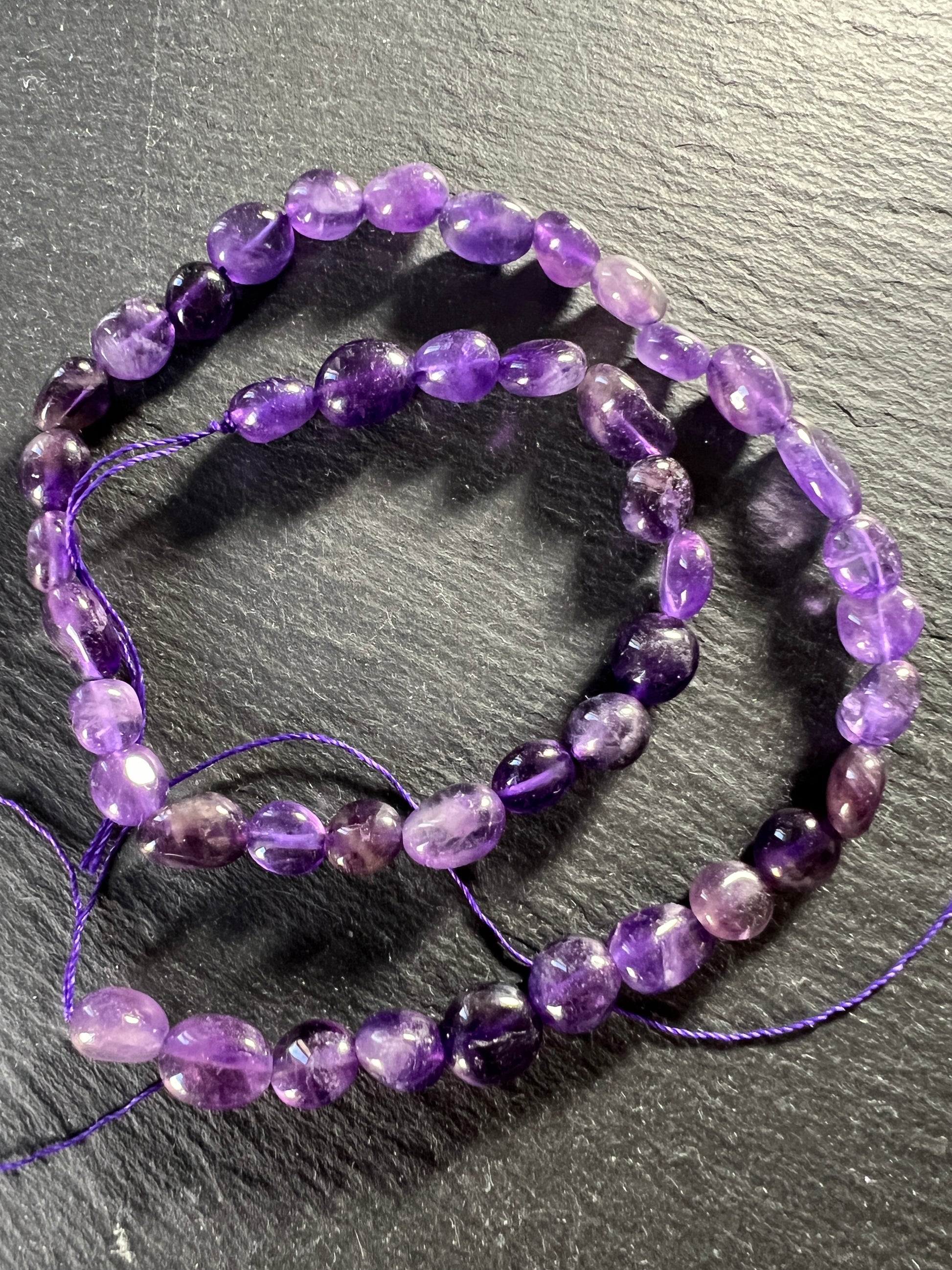 Fil de perles en pierres fines d'Améthyste violette, forme pépites, de très belle qualité.