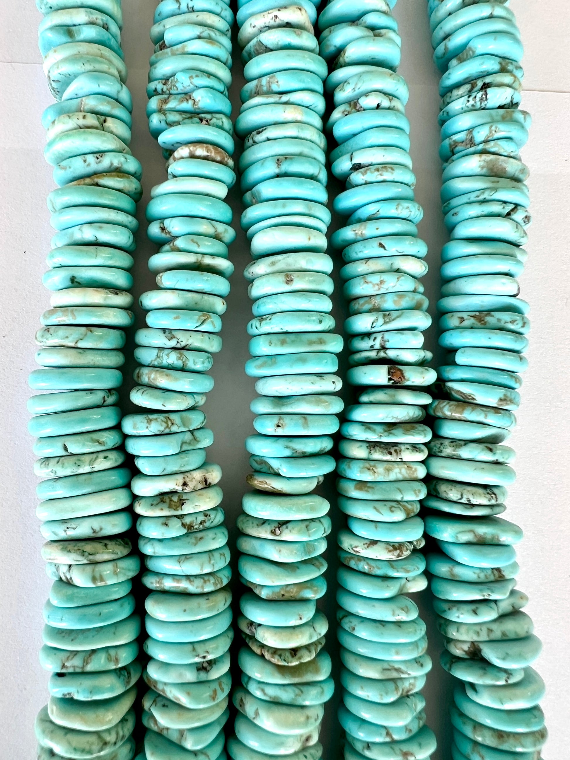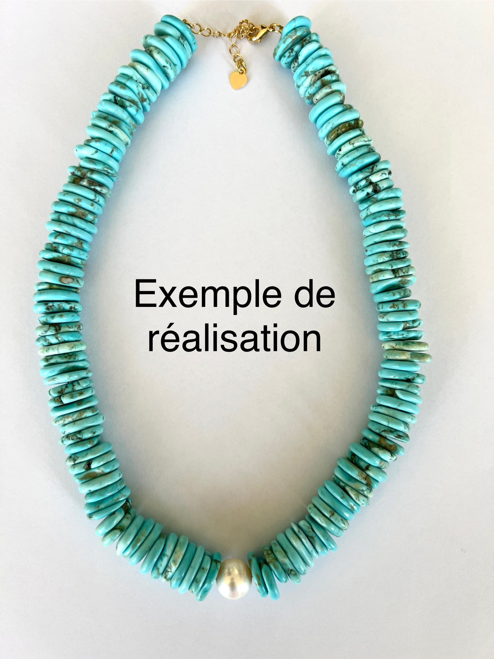 La magnésite teinte est très souvent utilisée pour remplacer la véritable turquoise bien plus onéreuse, le rendu est superbe et beaucoup plus abordable.