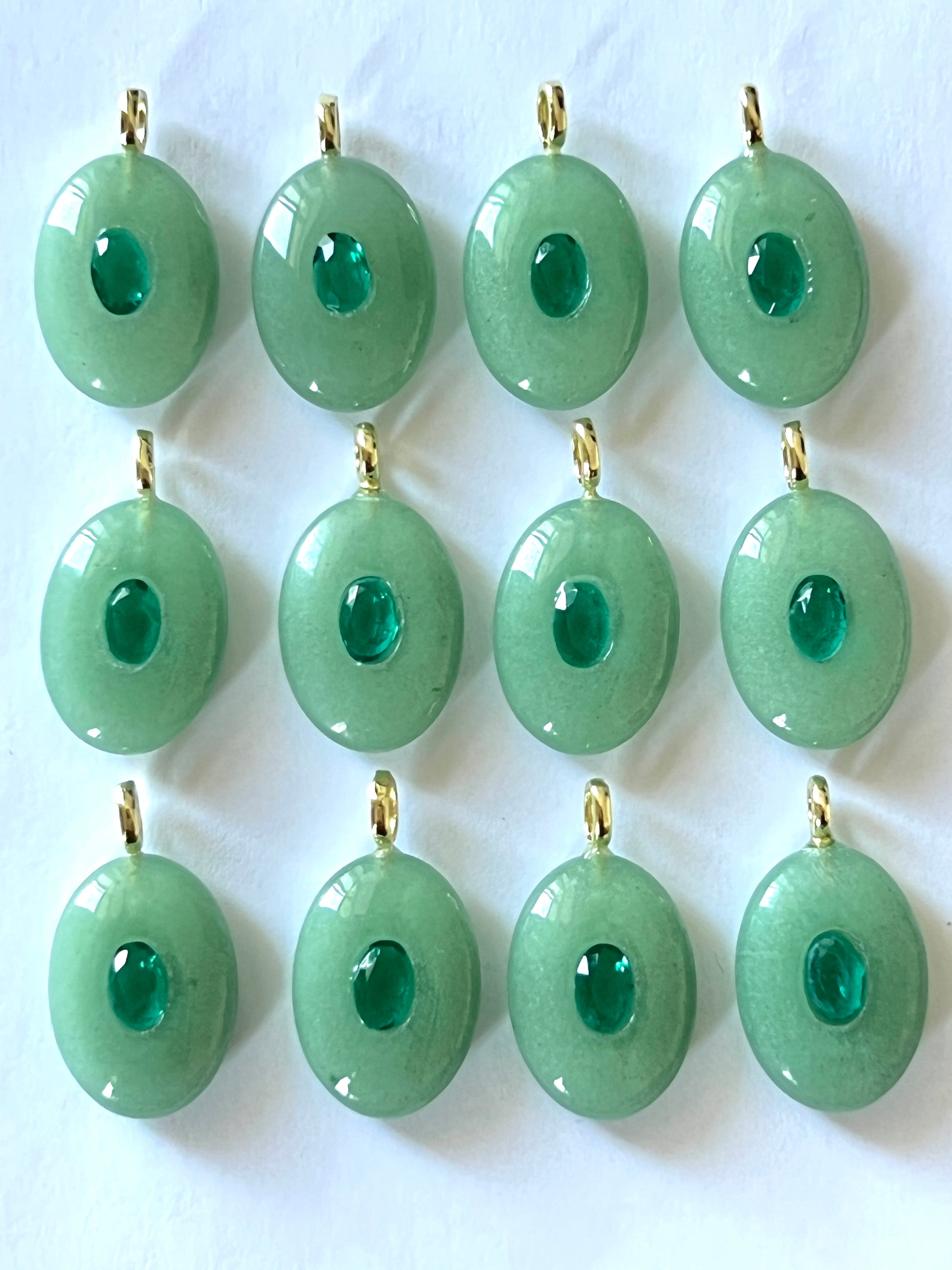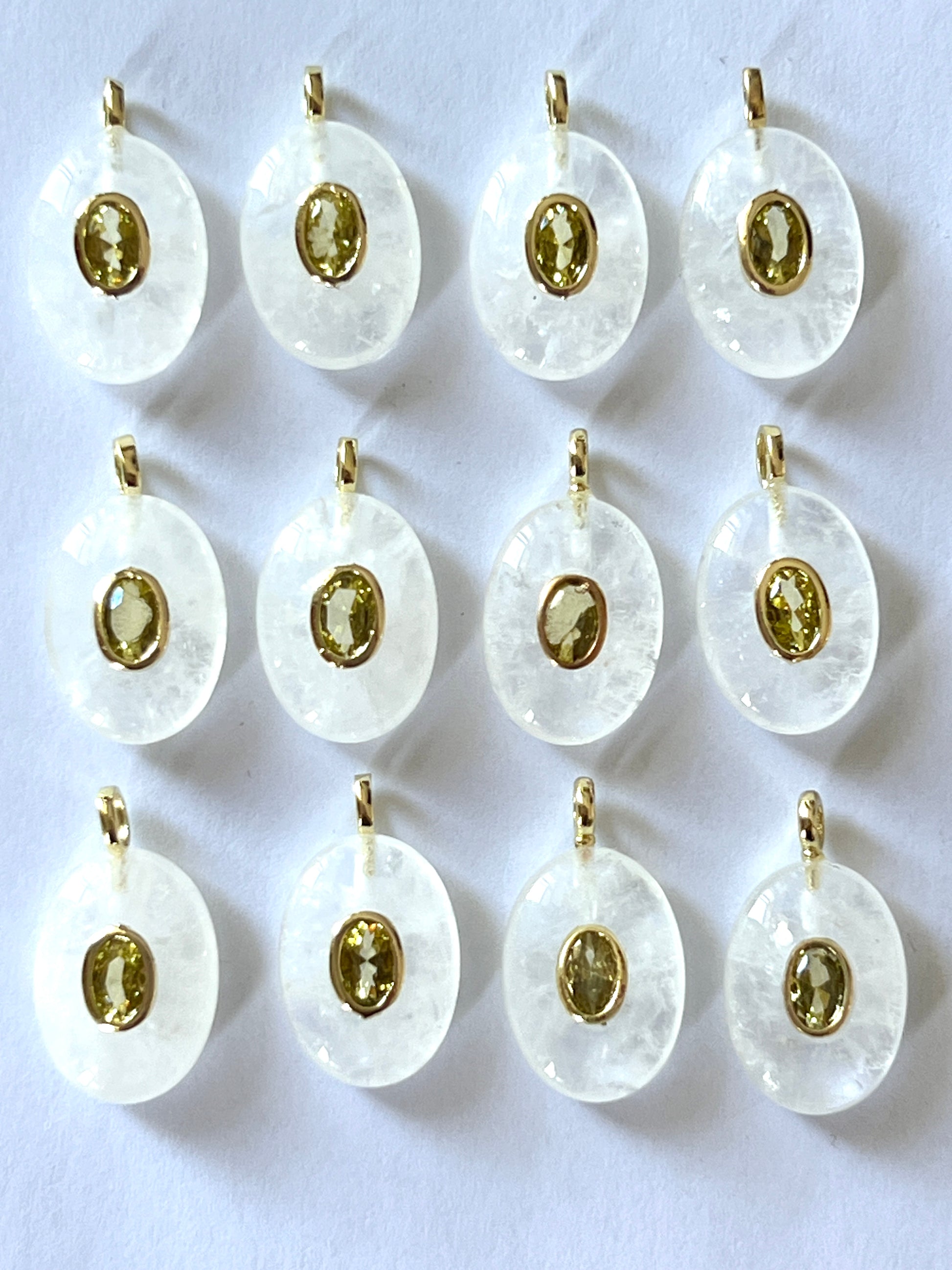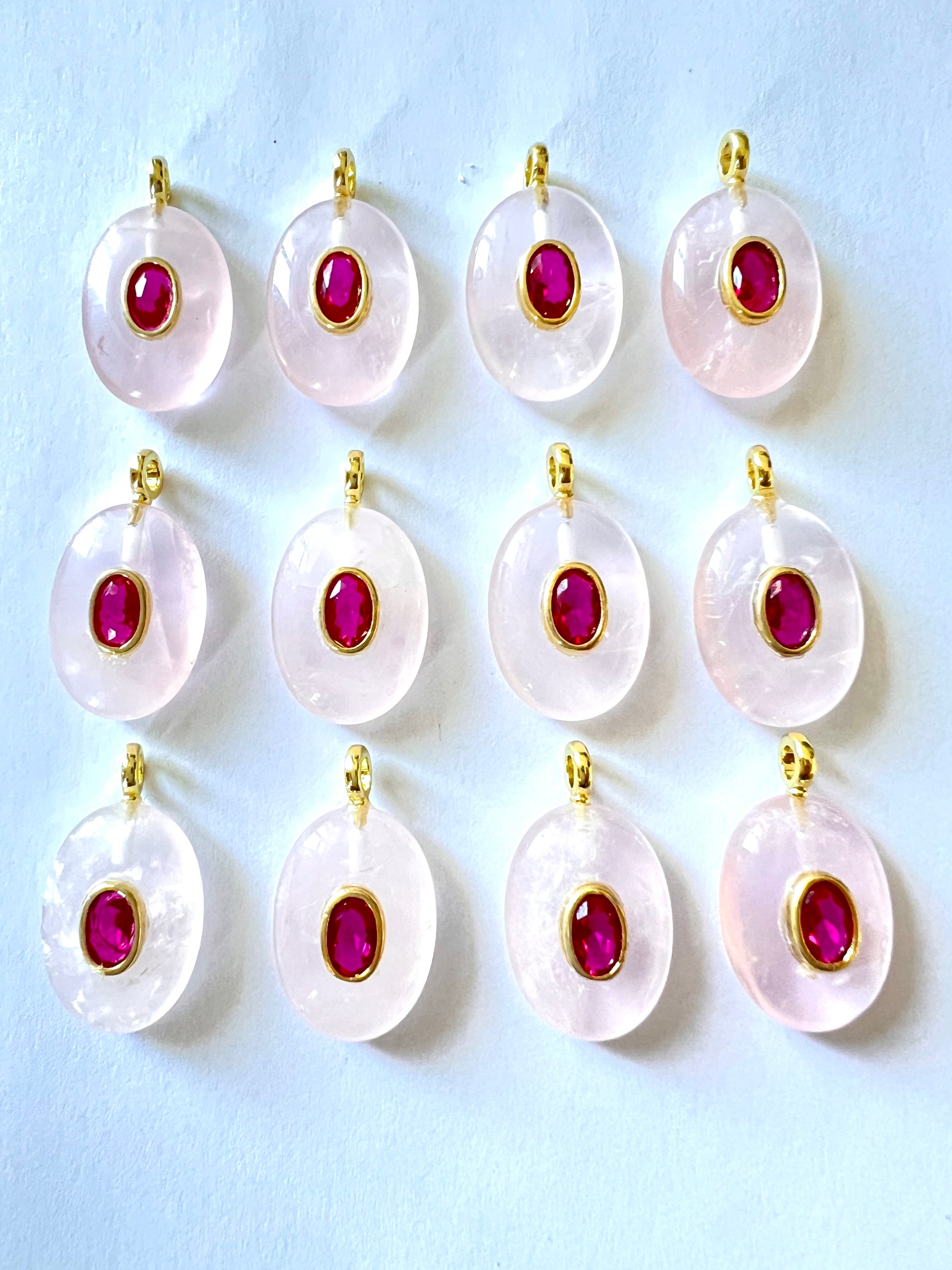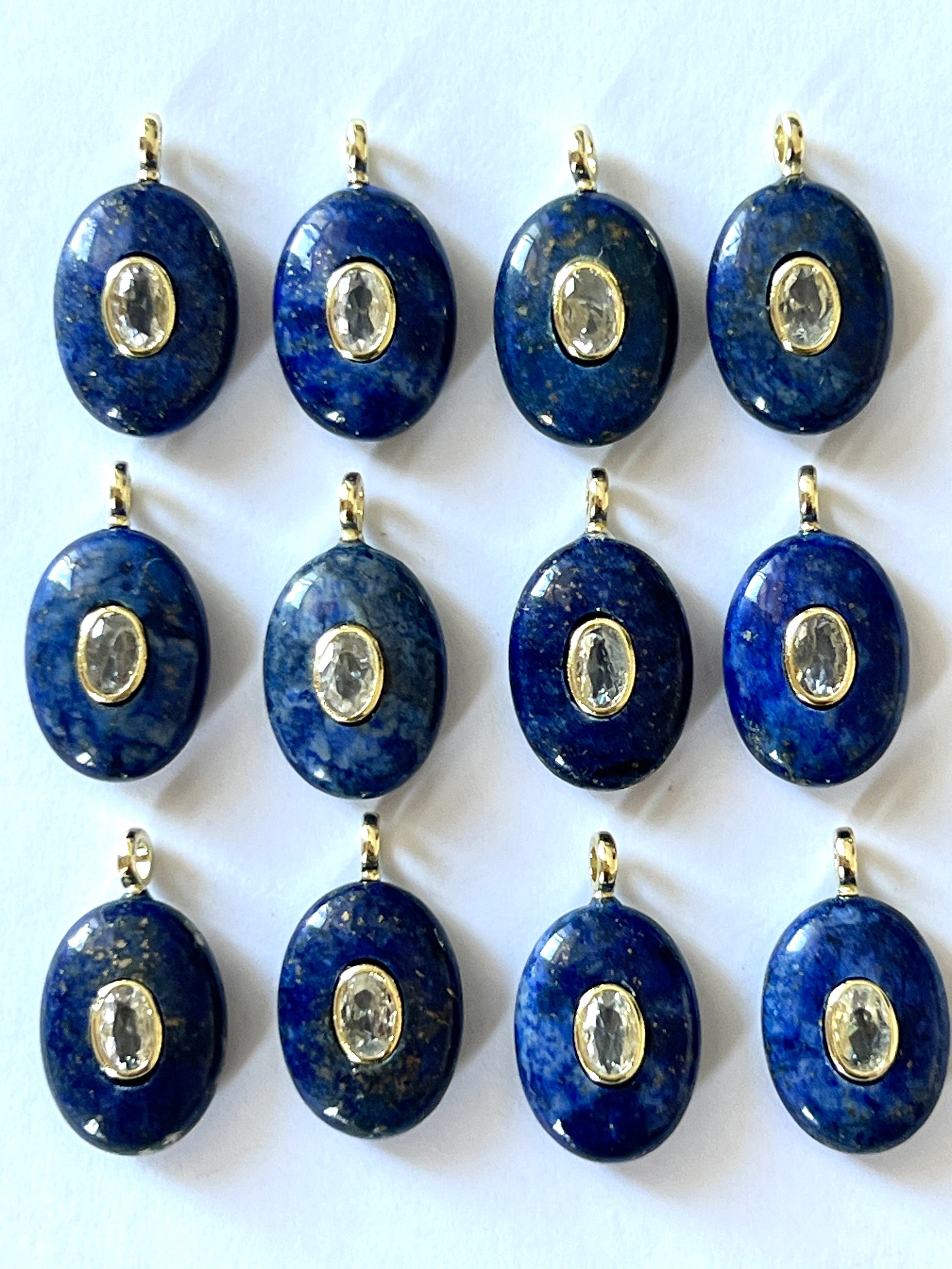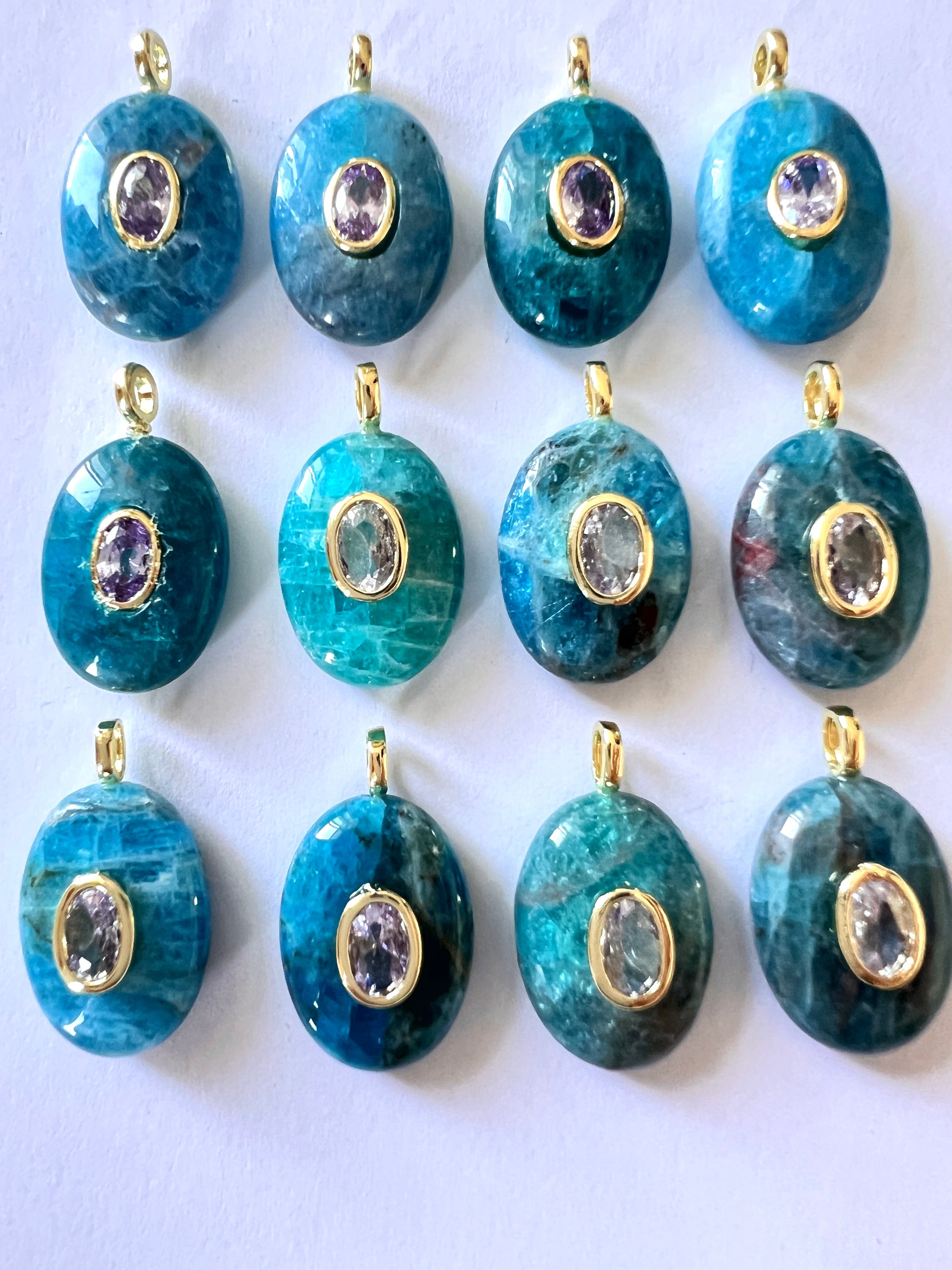 Pendentif ovale en pierre serti d'un Zircon, ces petits pendentifs sont uniques.