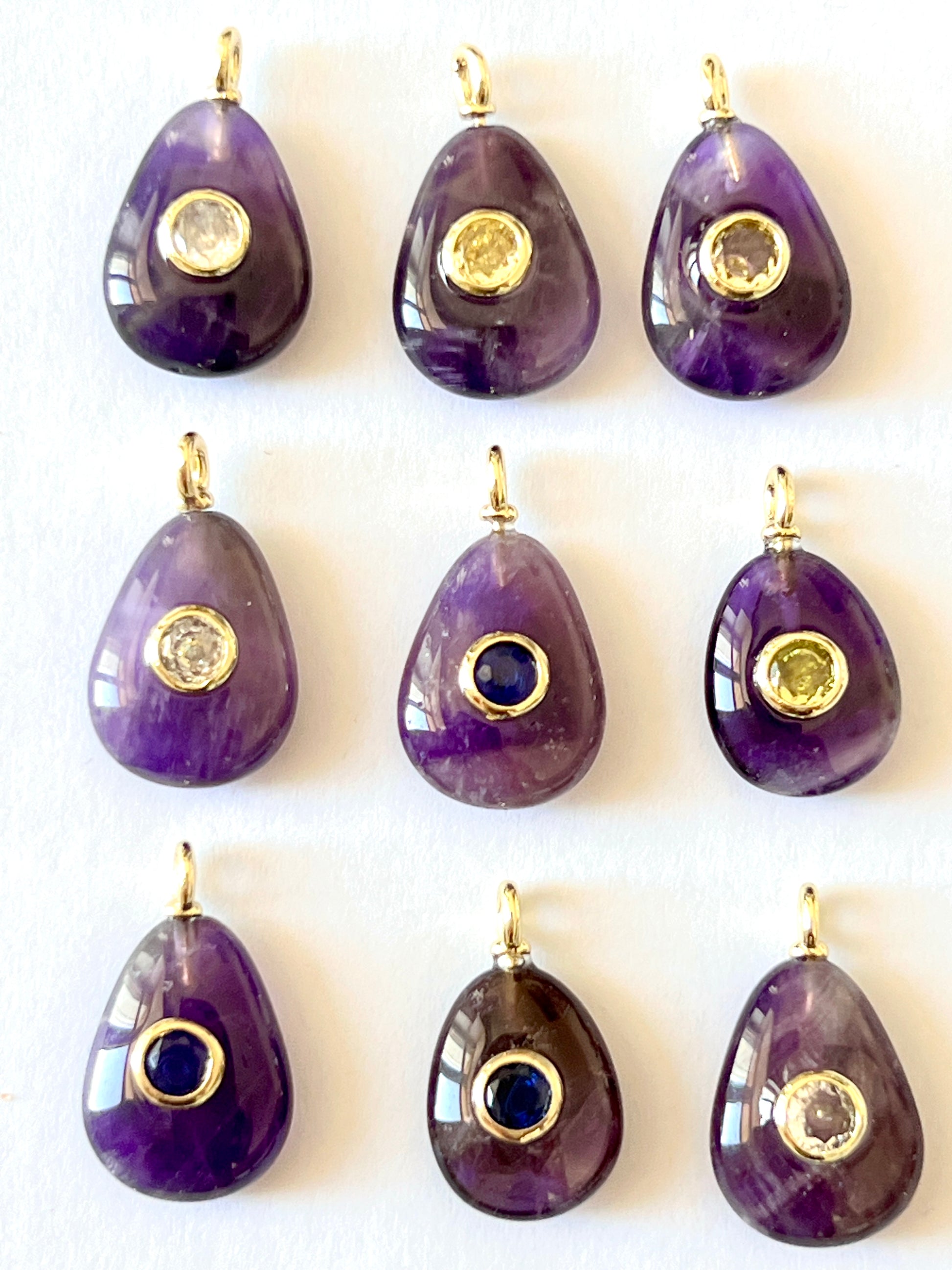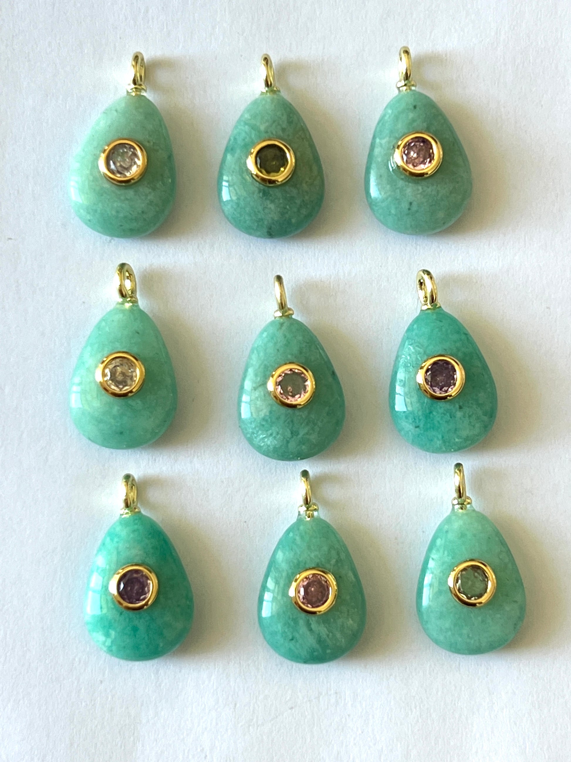 Petit Pendentif larme en pierre serti d'un Zircon, ces petits pendentifs sont uniques.