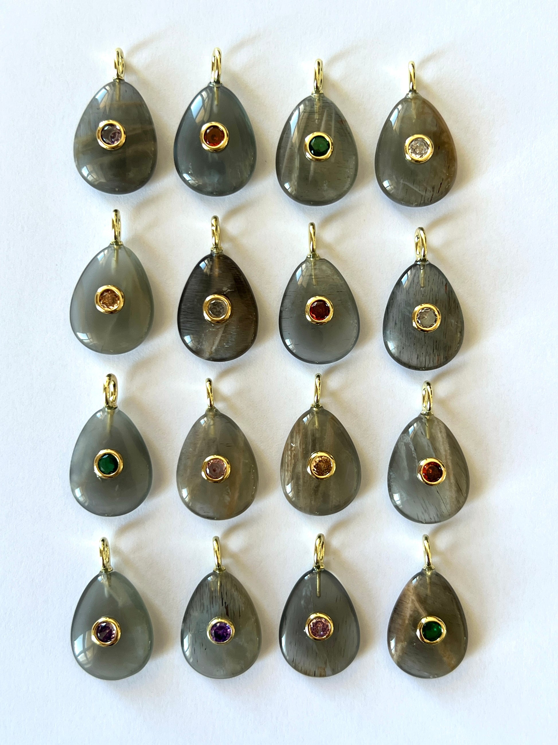 Petit Pendentif larme en pierre serti d'un Zircon, ces petits pendentifs sont uniques.
