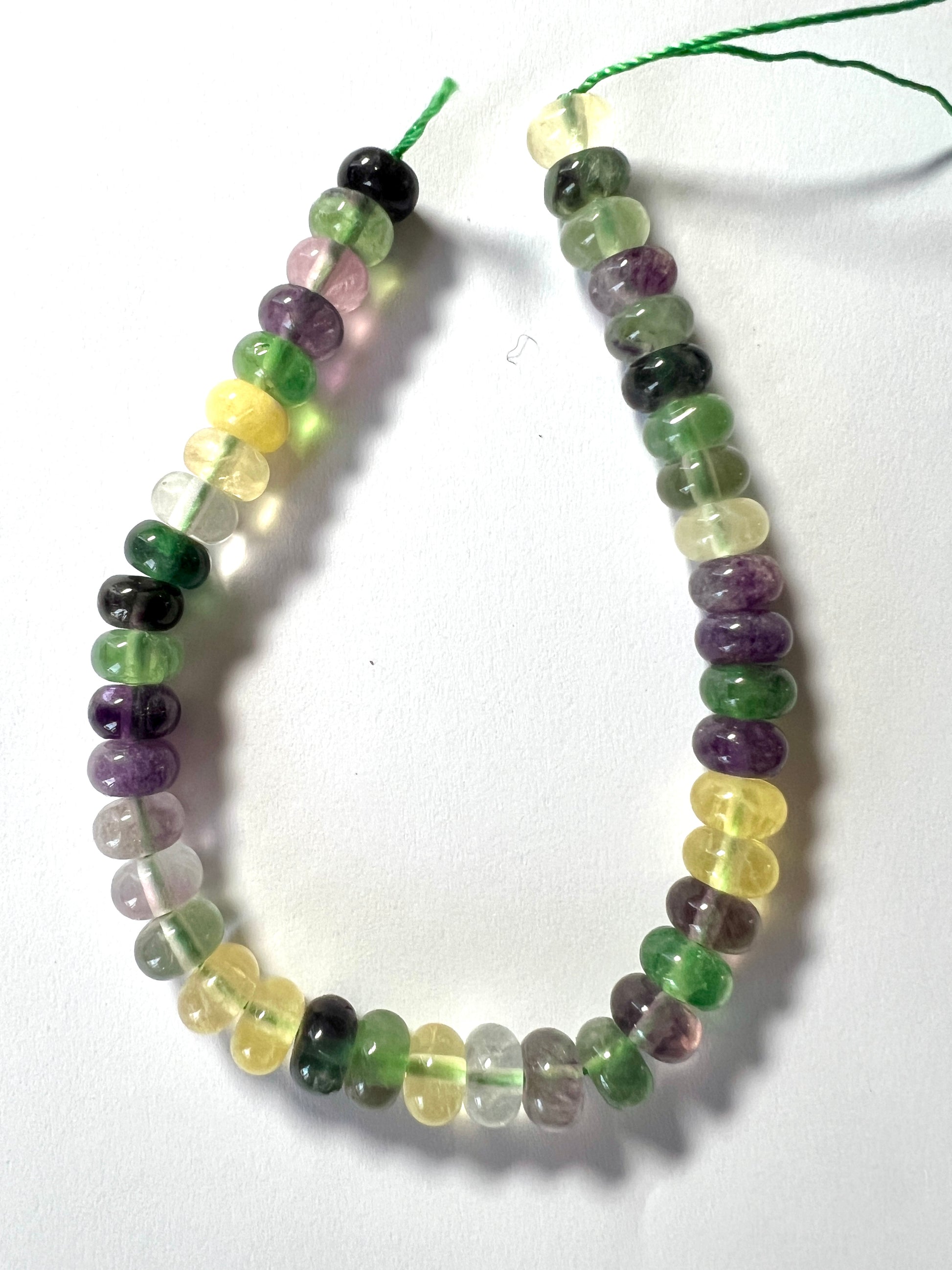 Fil de perles en pierres fines, forme rondelles en Fluorite multicolore.