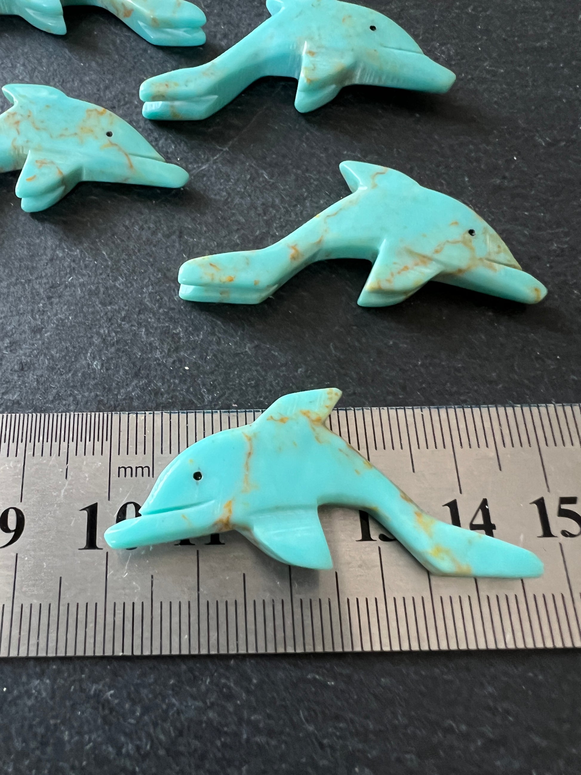 1- Totem Dauphin turquoise, en pierre de magnésite teintée