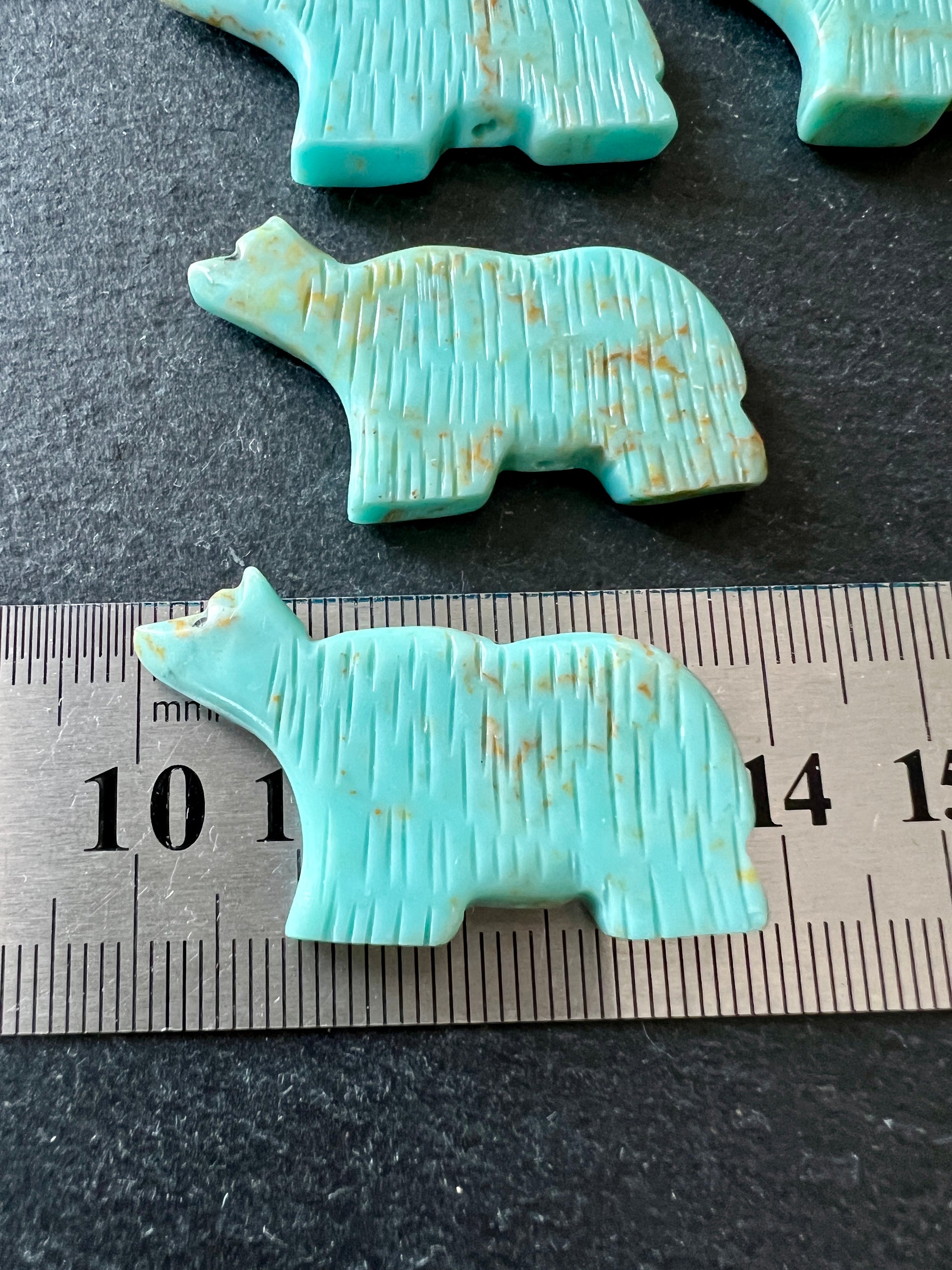 6-Totem Gros ours Turquoise en magnésite teintée,