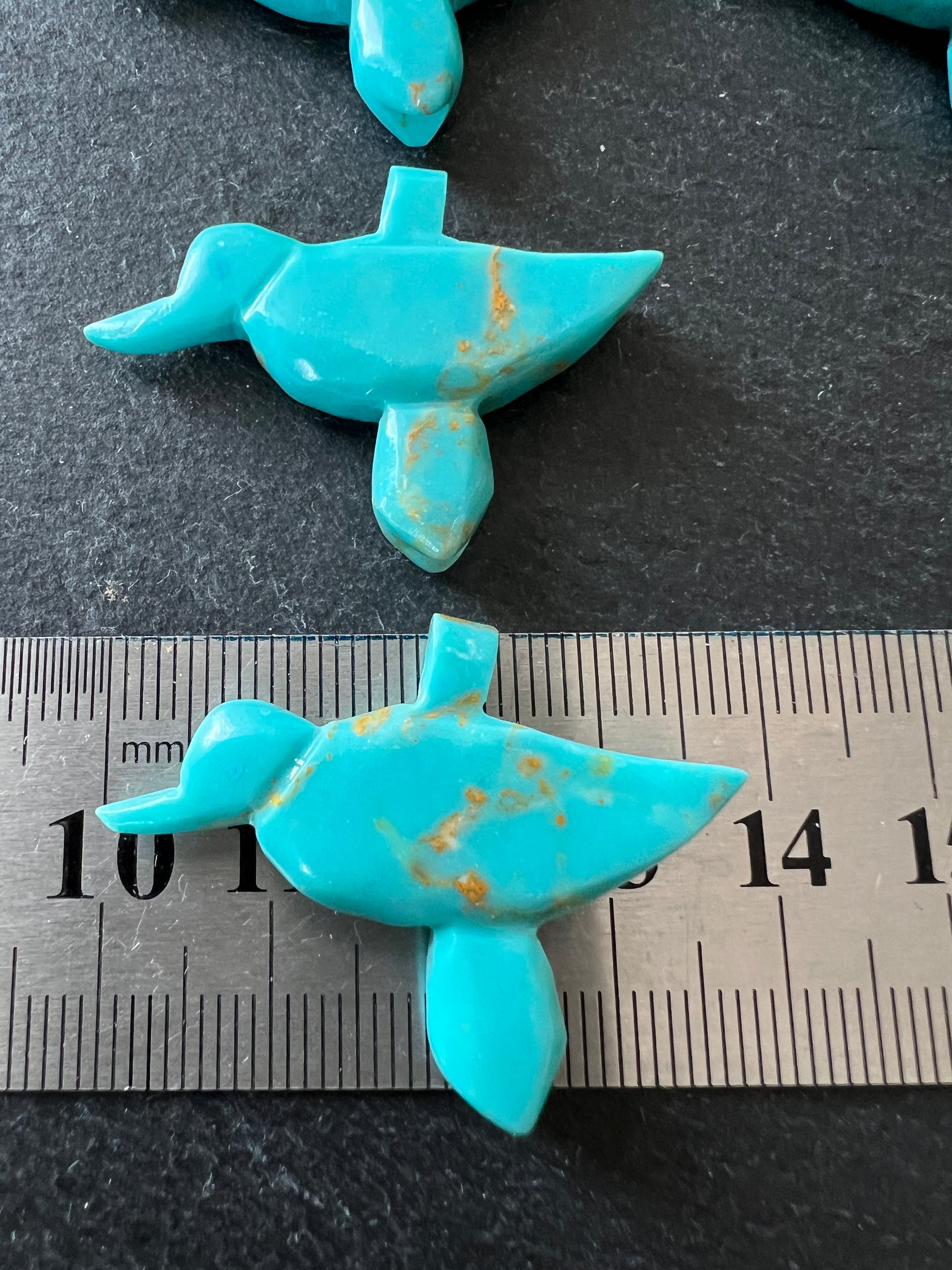 11-Totem Gros oiseau Turquoise en magnésite teintée,