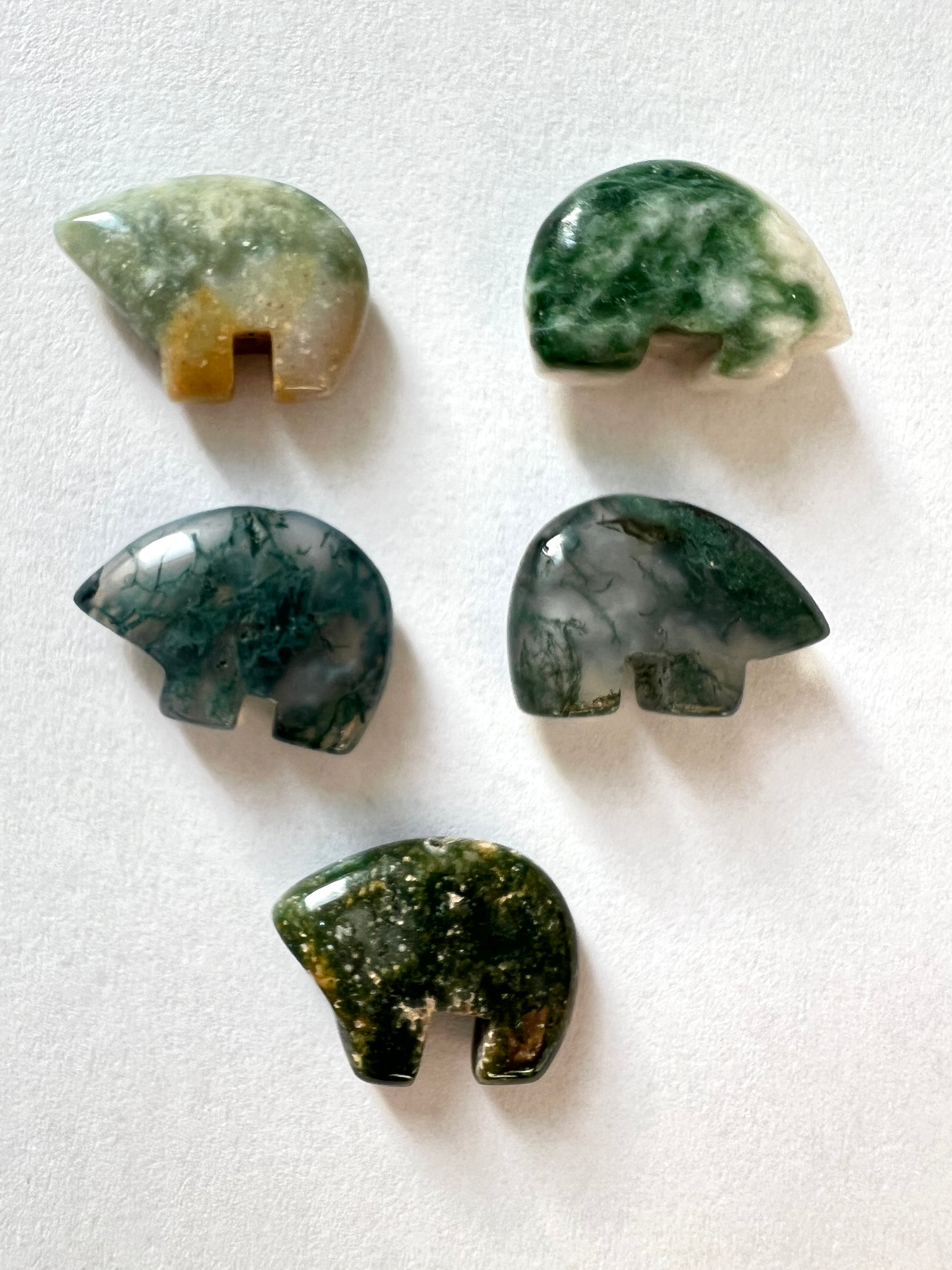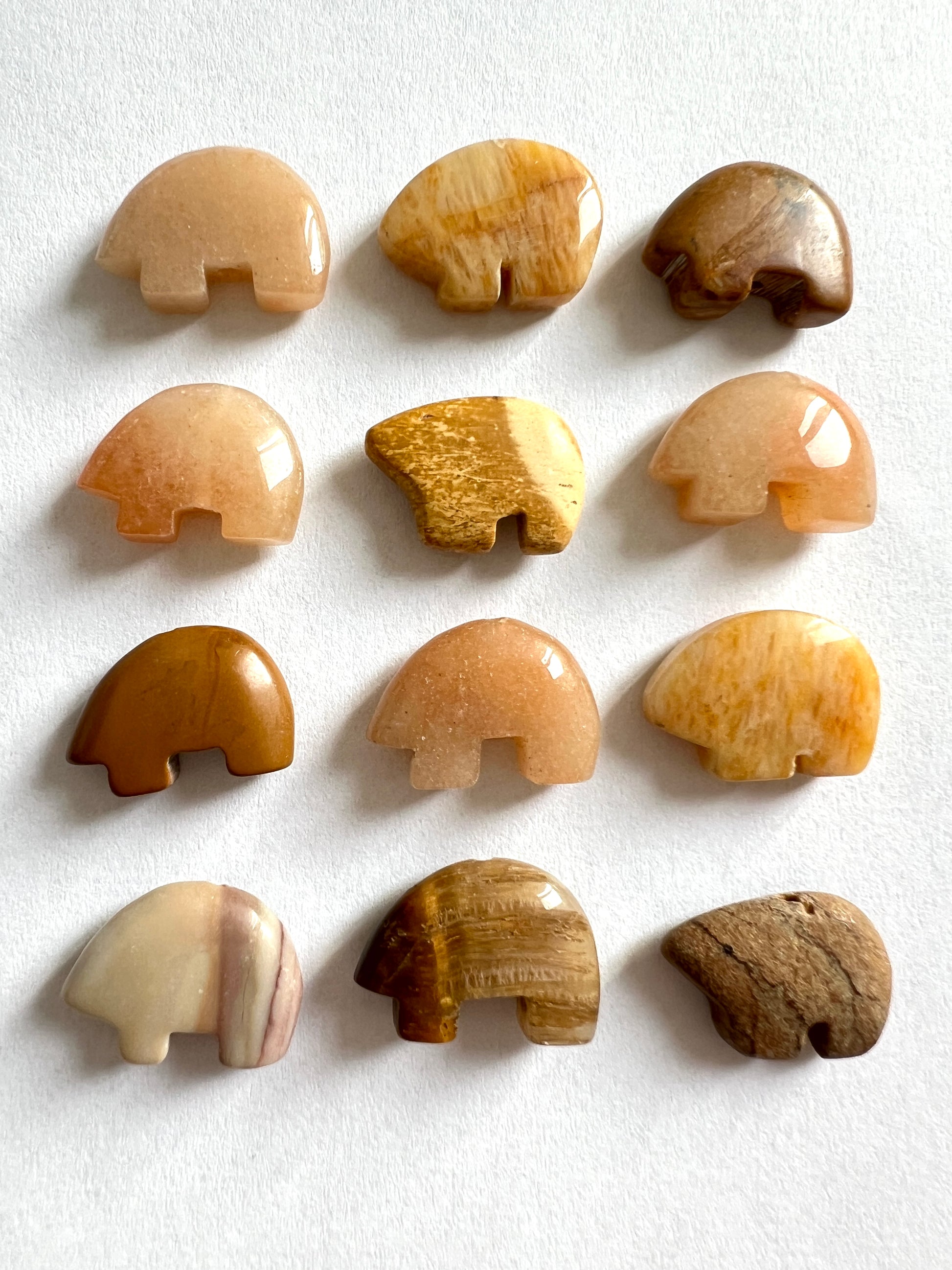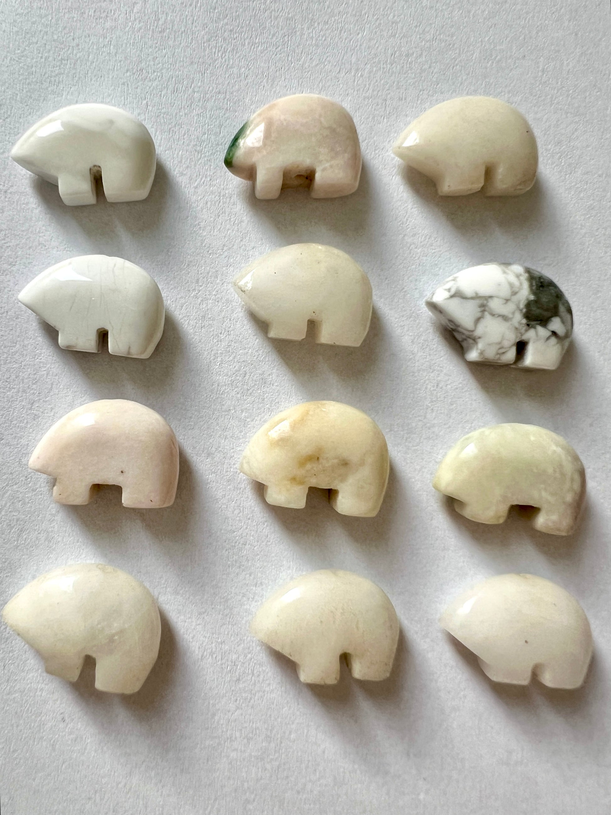 de petits animaux sculptés de pierres, ou coquillages.