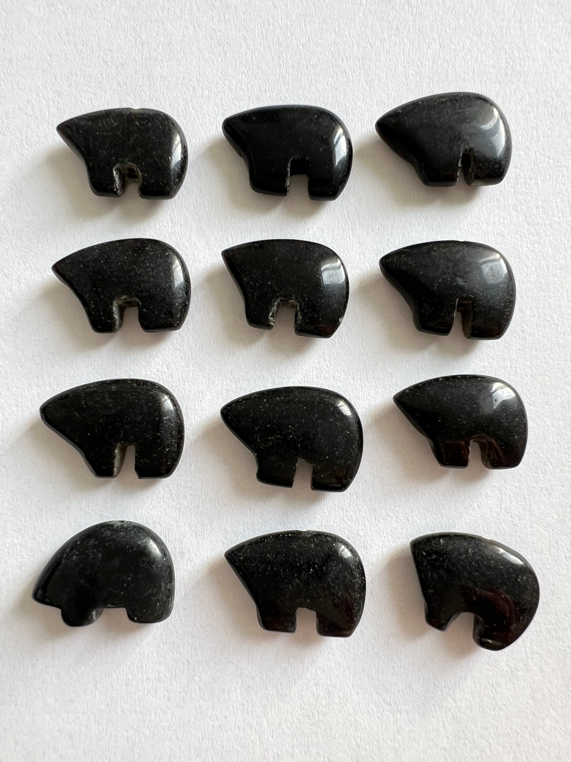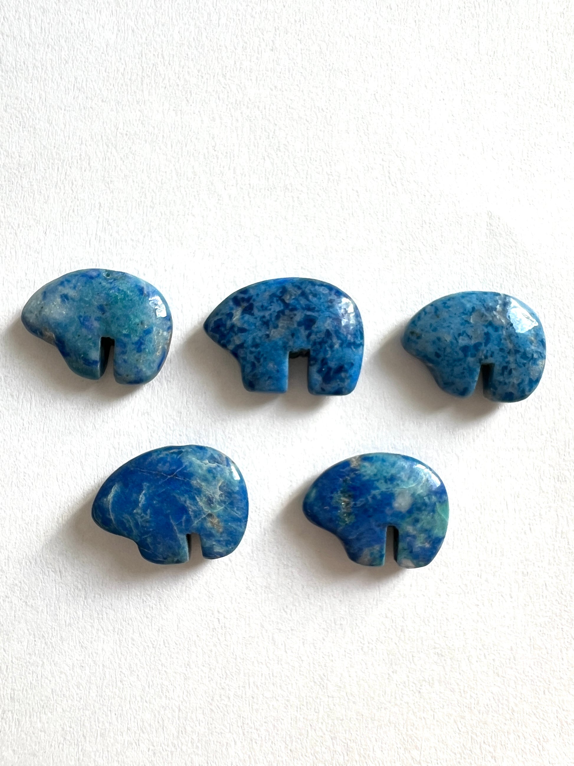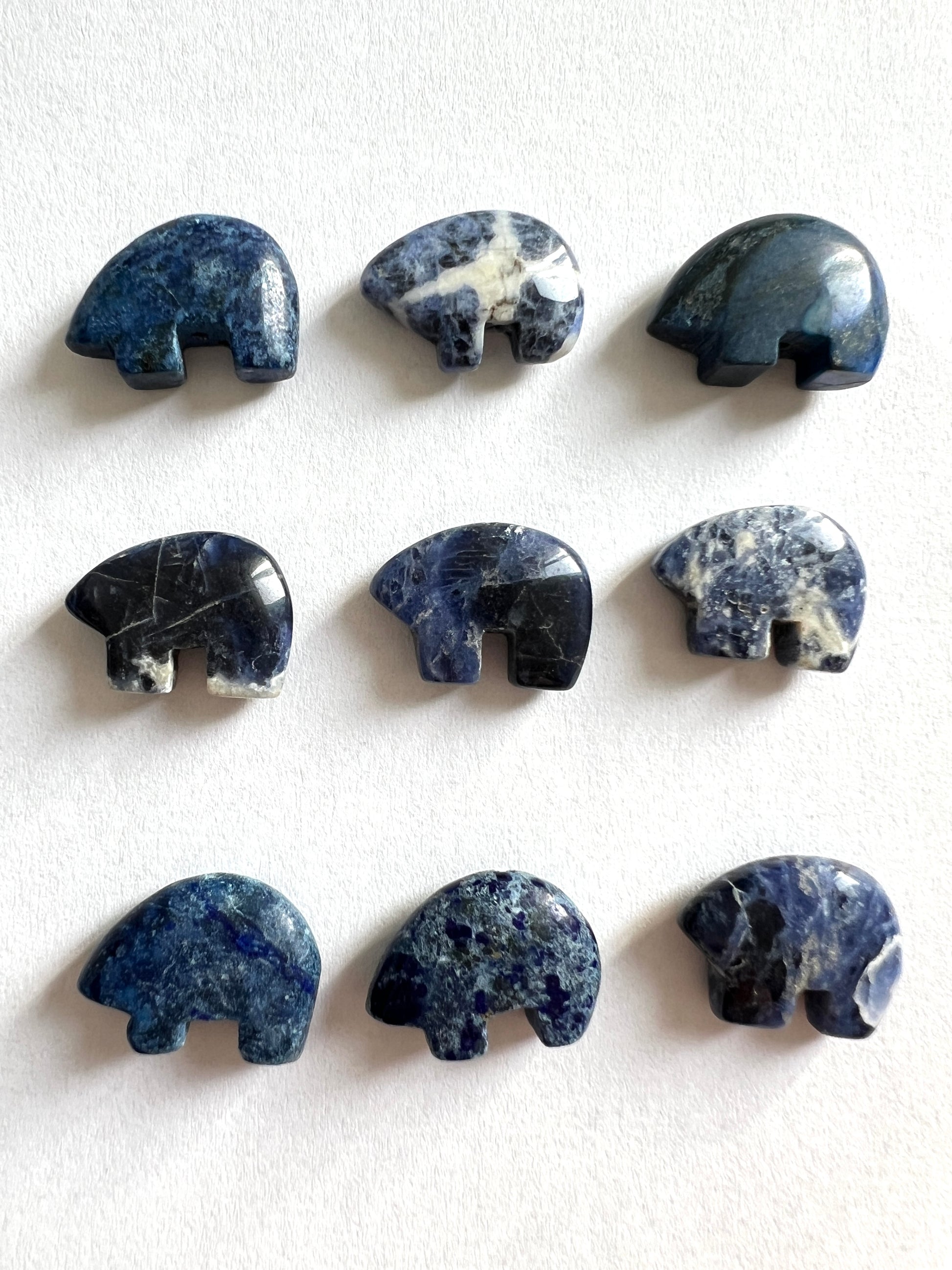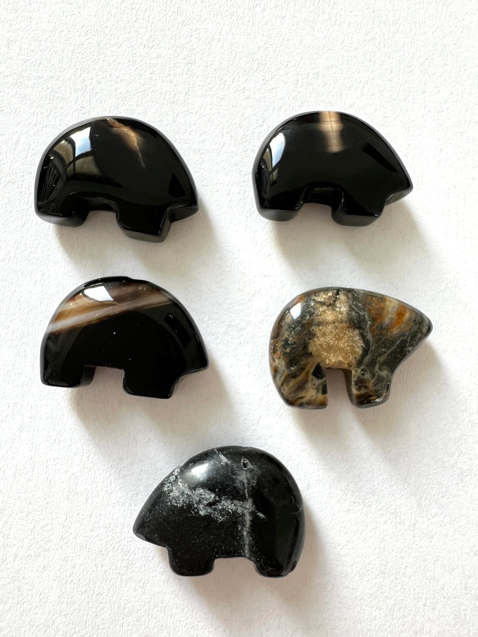 de petits animaux sculptés de pierres, ou coquillages.